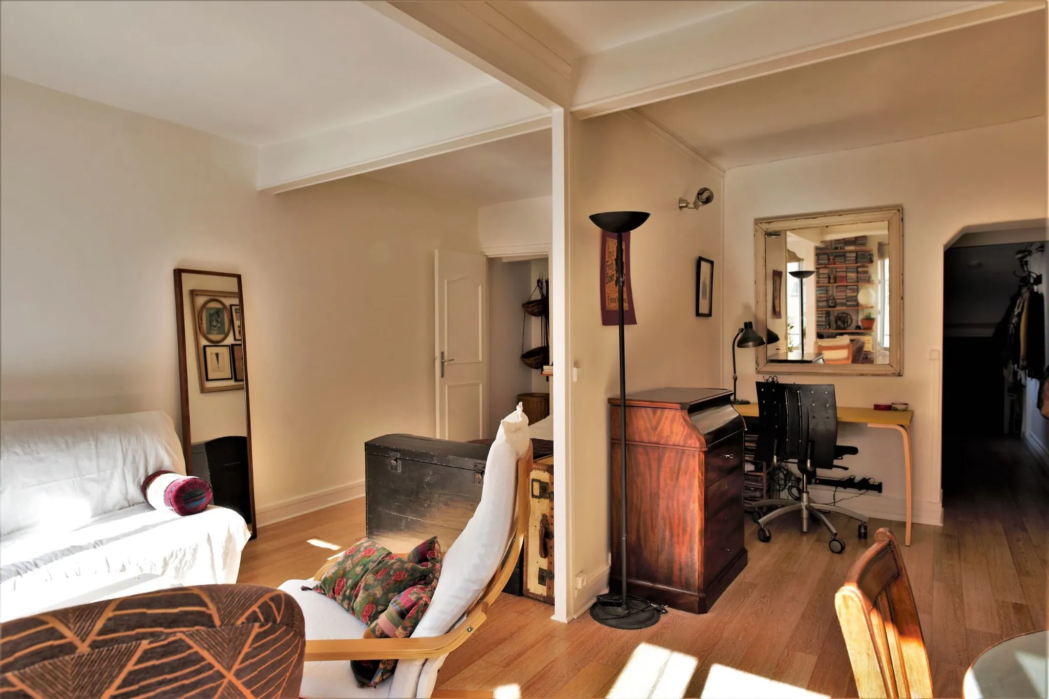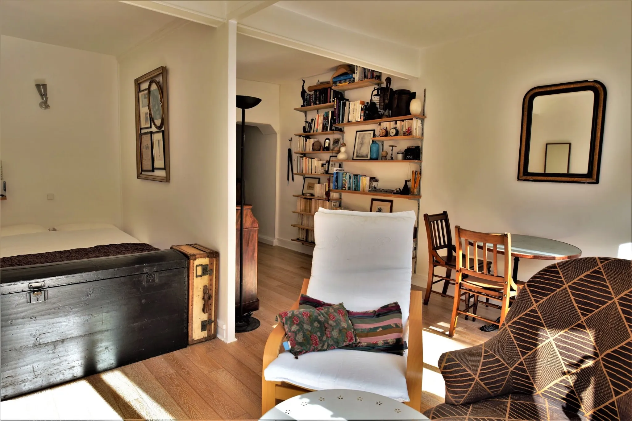 Situé rue Poissonnière, au 4ᵉ étage d’un immeuble sans ascenseur, cet appartement de 2 pièces, partiellement cloisonné, offre une atmosphère chaleureuse et une surface parfaitement optimisée.