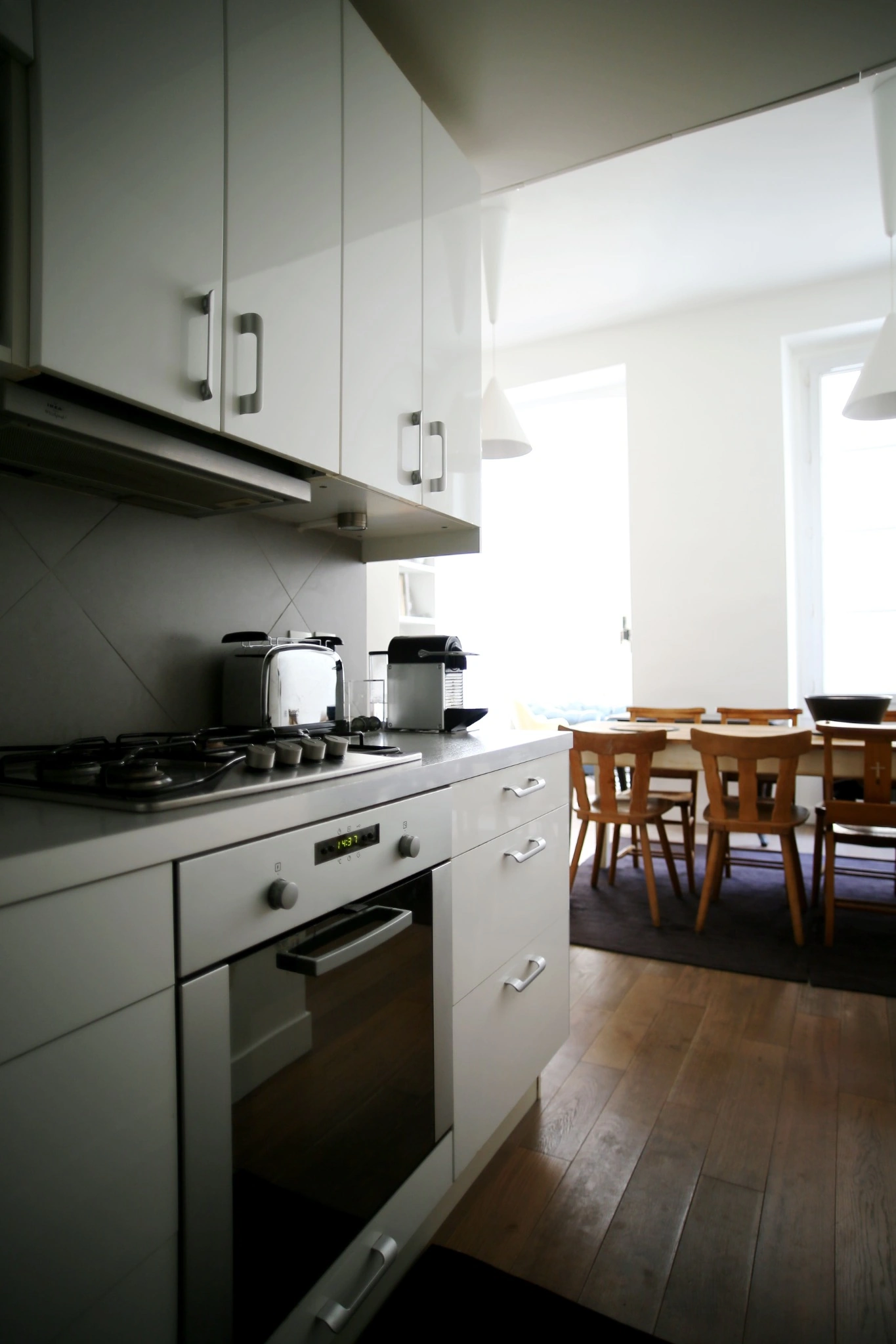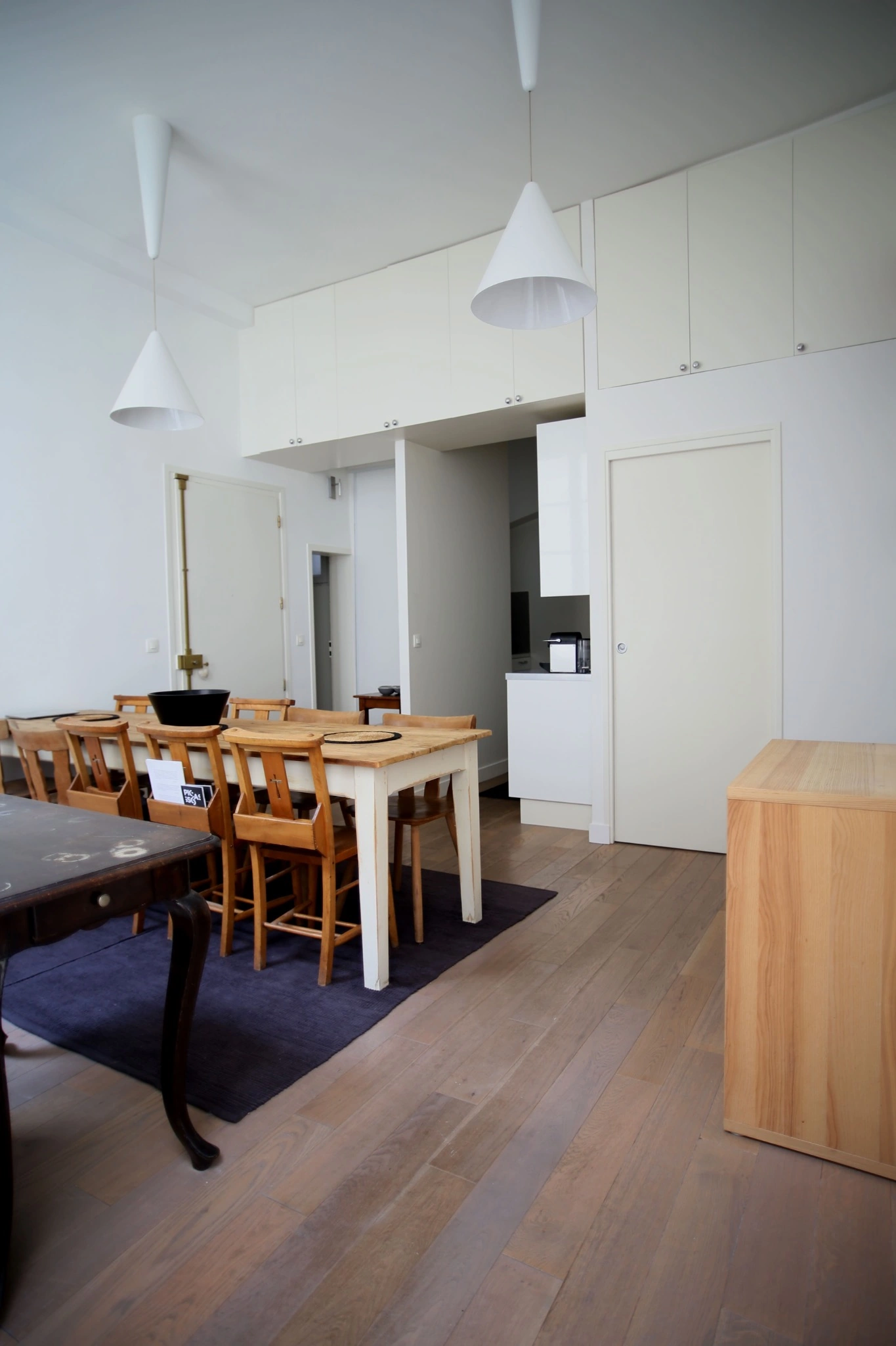 Situé au premier et dernier étage d’un immeuble sur cour, au sein d’une copropriété classée à l’inventaire des Monuments Historiques, cet appartement 4 pièces a fait l’objet d’une restructuration complète alliant confort contemporain et caractère architectural. Dès l’entrée, une agréable salle à manger accompagne une cuisine semi-ouverte, pensée pour optimiser l’usage et les volumes.