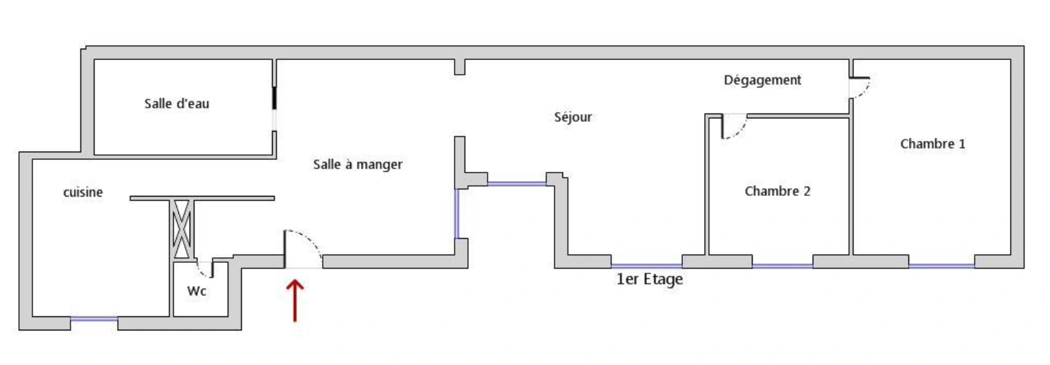 surface : 68 m2 pièces : 4 chambre : 2 étage : 1
