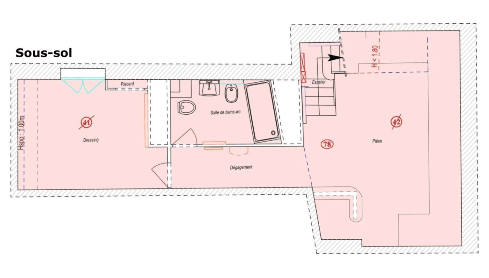 En sous-sol aménagé, accessible directement depuis l’appartement : une belle pièce polyvalente, un dressing, une salle de bains avec WC et un dégagement.