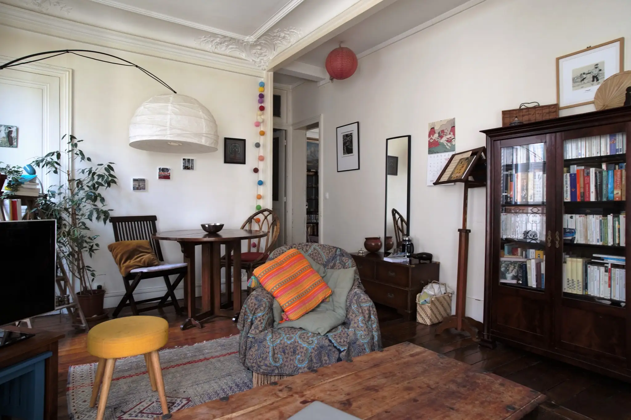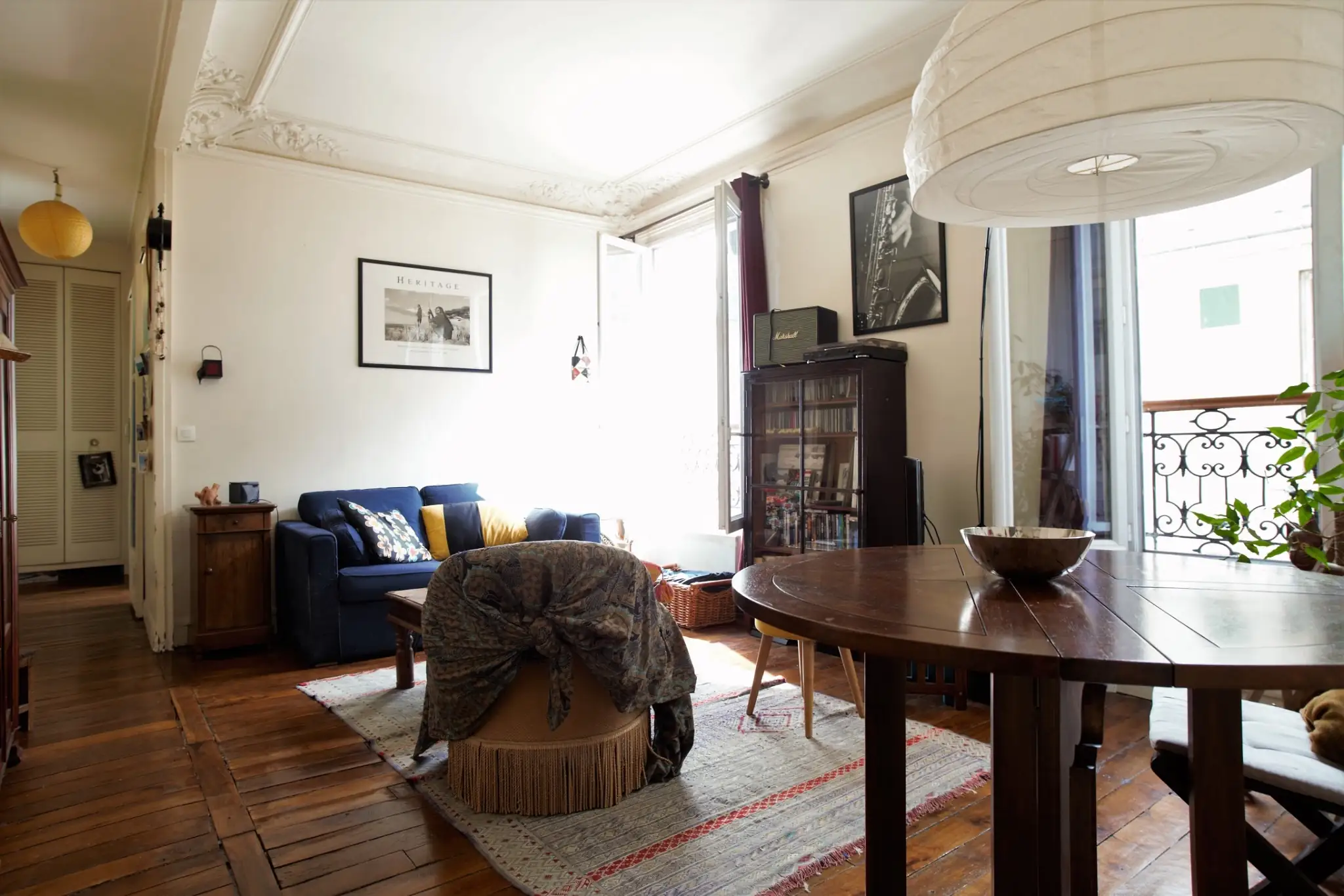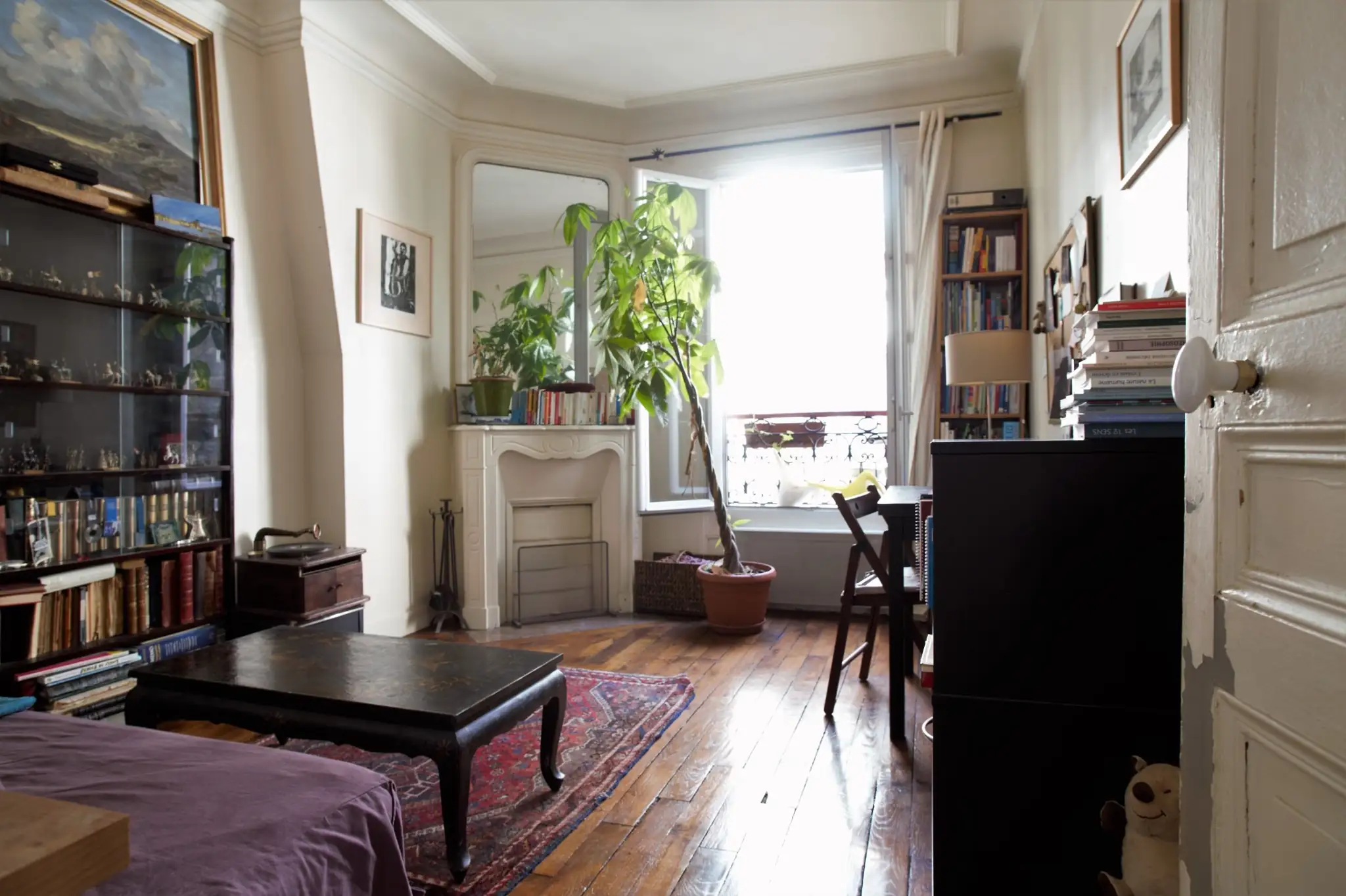 L’ensemble a conservé tous les éléments anciens de charme qui font l’identité des appartements parisiens de cette époque : parquet, moulures et cheminée.