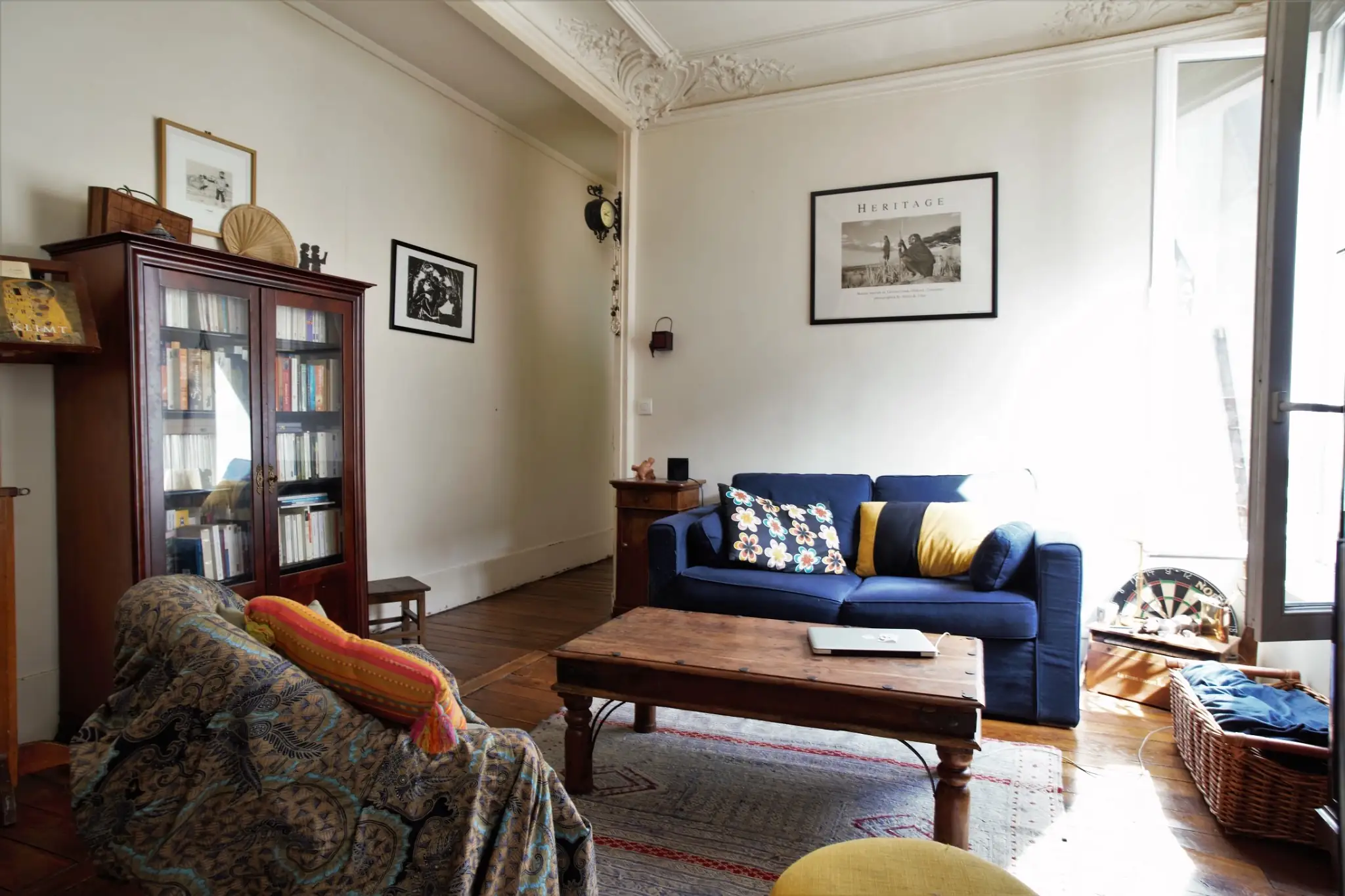 L’entrée dessert un salon exposé à l’ouest, une cuisine indépendante, deux chambres, une salle de bains ainsi qu’un WC séparé, garantissant un confort d’usage rare dans ce type d’immeuble ancien.