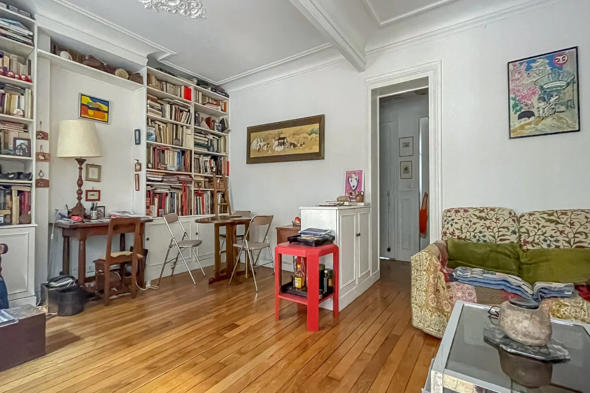 Le double séjour exposé Sud-Ouest, donnant sur une rue calme du secteur rue Dulong, bénéficie d’une lumière douce et constante.