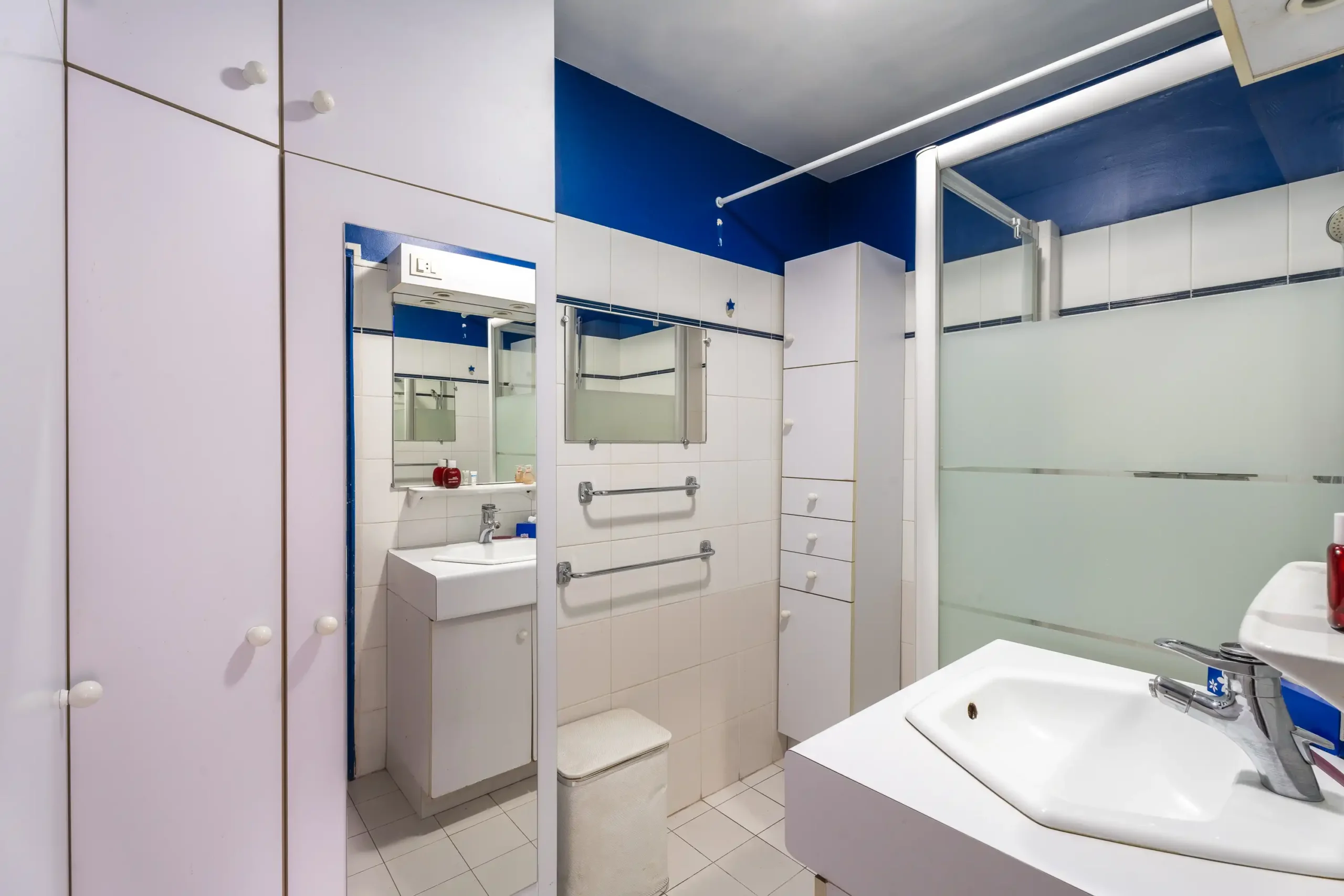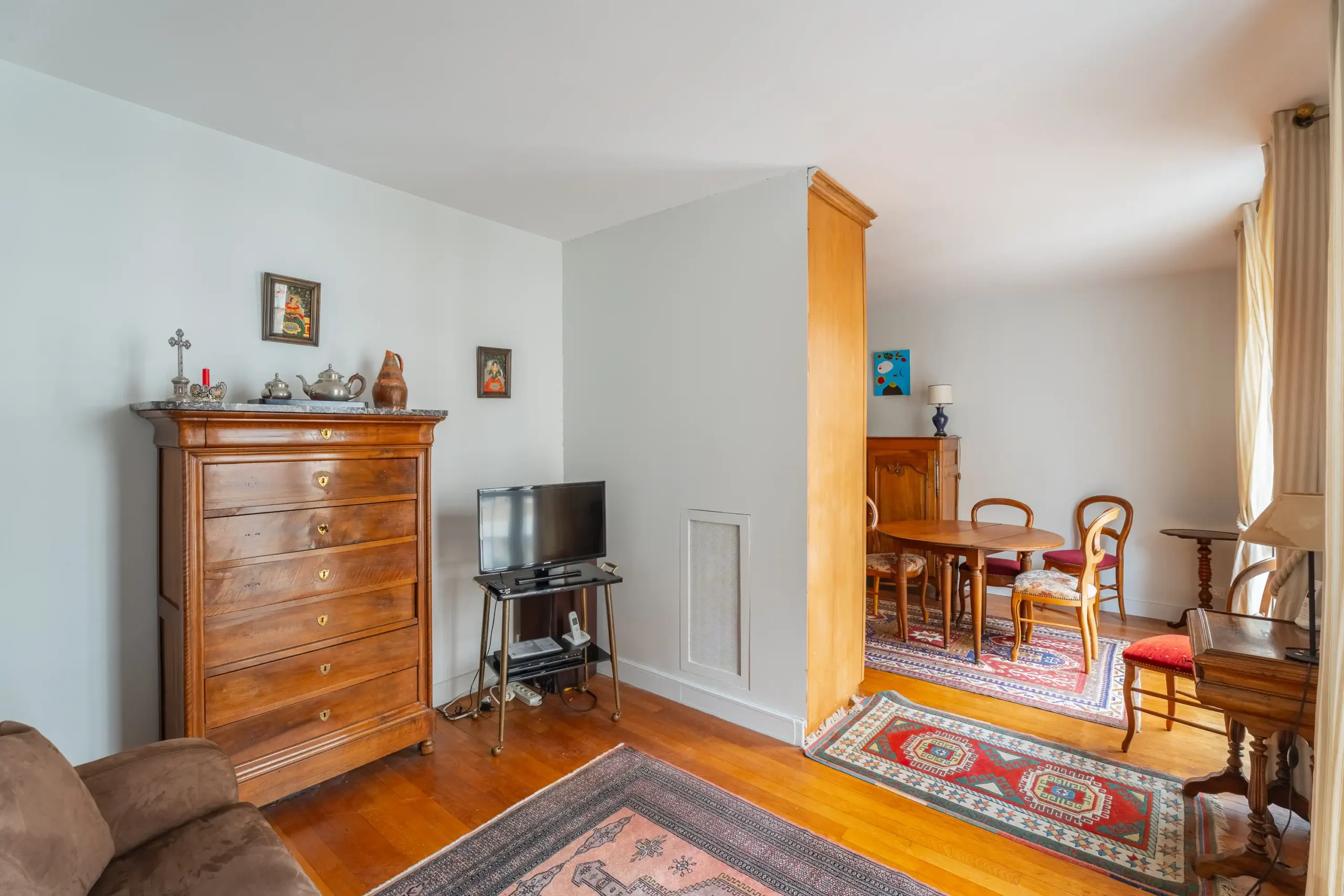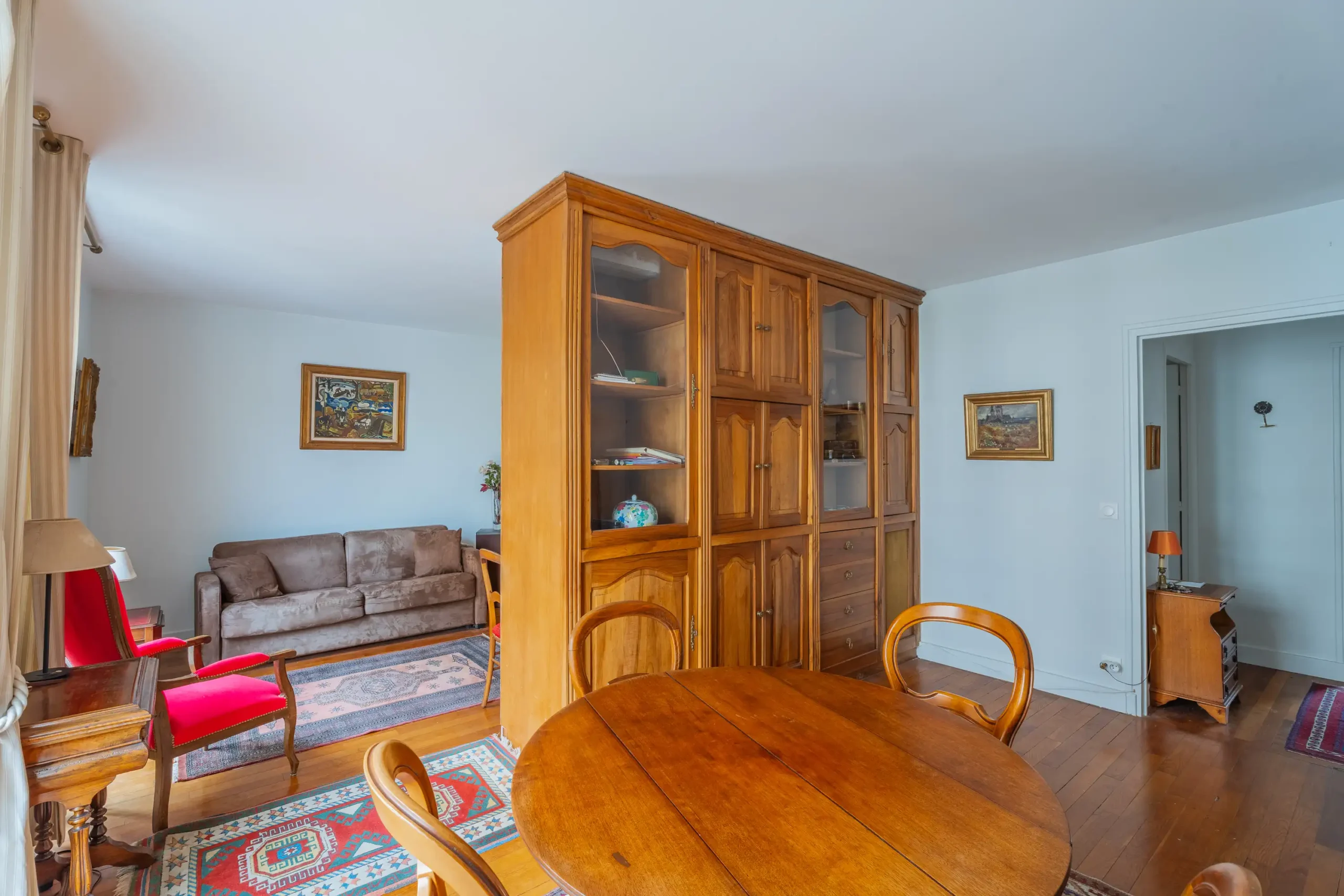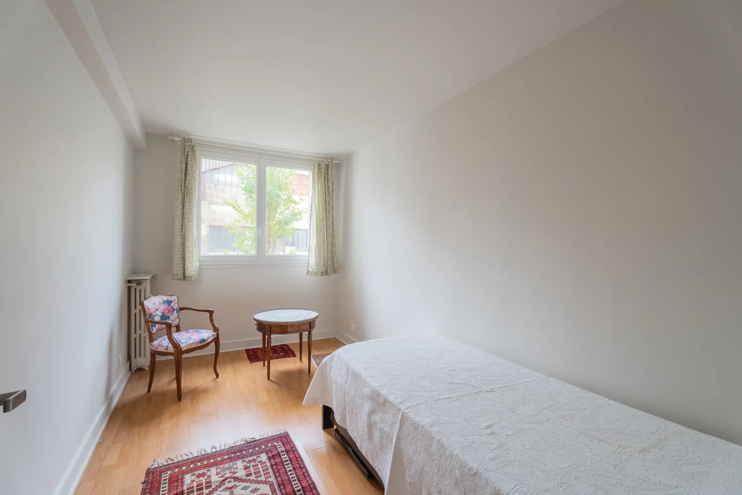 La partie nuit, accessible par un dégagement avec rangements, comprend deux chambres calmes sur cour, une salle de bains et des WC séparés, garantissant un confort d’usage au quotidien.