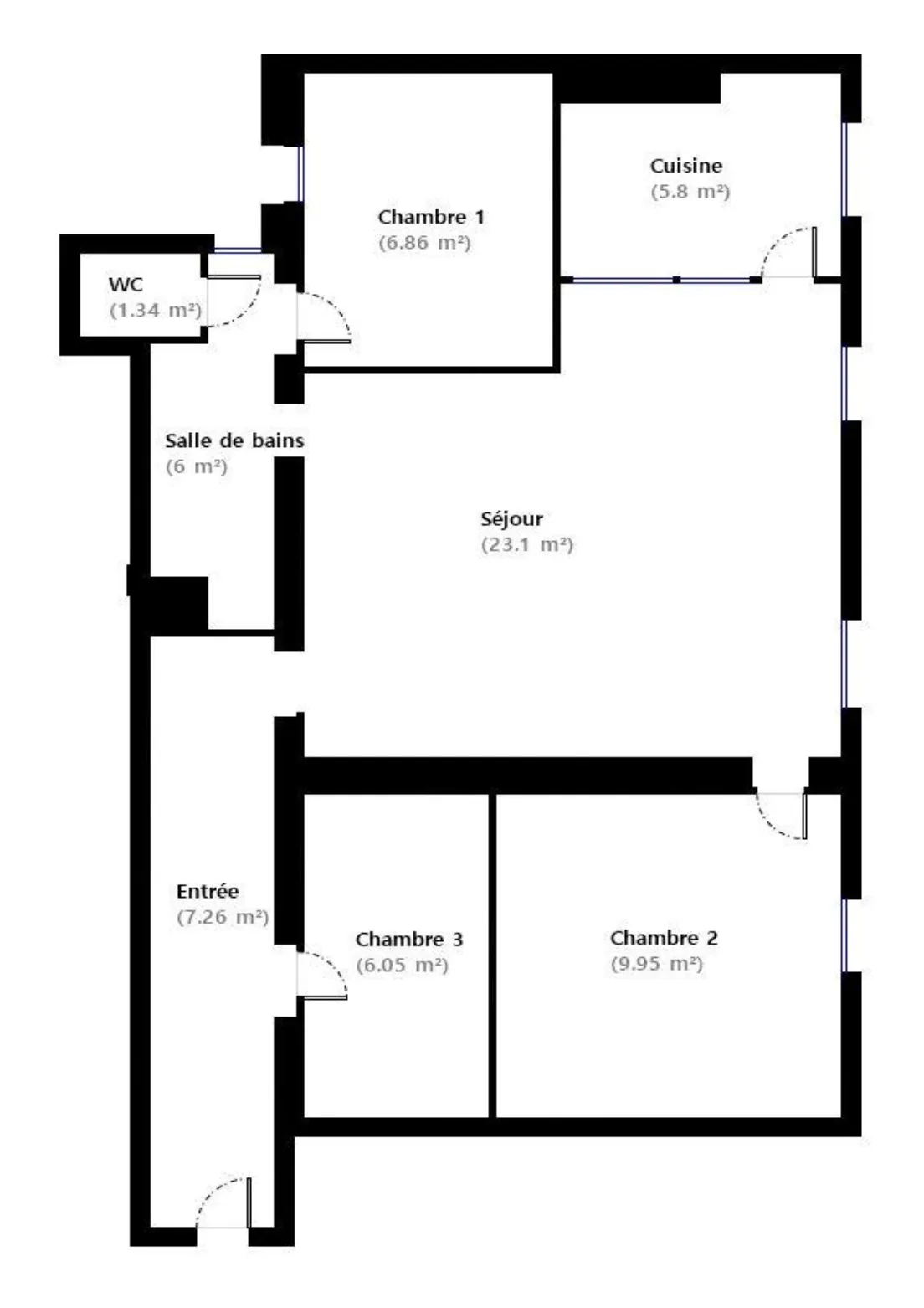 Situé au 5ᵉ étage sans ascenseur, il se compose actuellement d’une entrée distribuant un séjour lumineux, prolongé par un balcon filant, de deux chambres, d’un bureau, d’une cuisine indépendante séparée du séjour par une baie vitrée esprit atelier, d’une salle de bains et d’un WC indépendant.