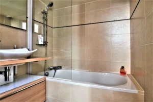L’appartement se compose d’une entrée desservant une cuisine ouverte sur un double séjour lumineux, surplombé par une mezzanine accueillant la chambre, d’une salle de bains et d’un WC indépendant. L’ensemble, rénové avec soin, associe charme de l’ancien et confort contemporain, offrant un espace de vie fonctionnel et chaleureux.