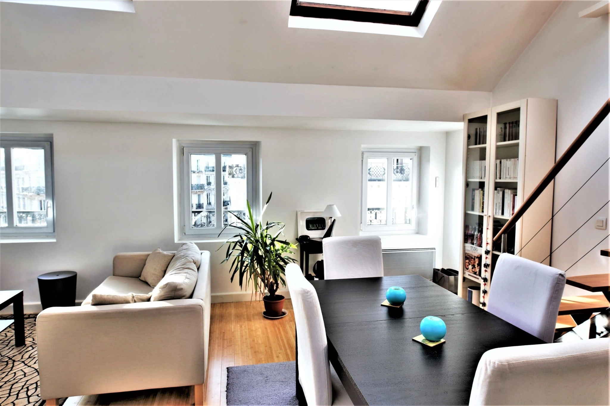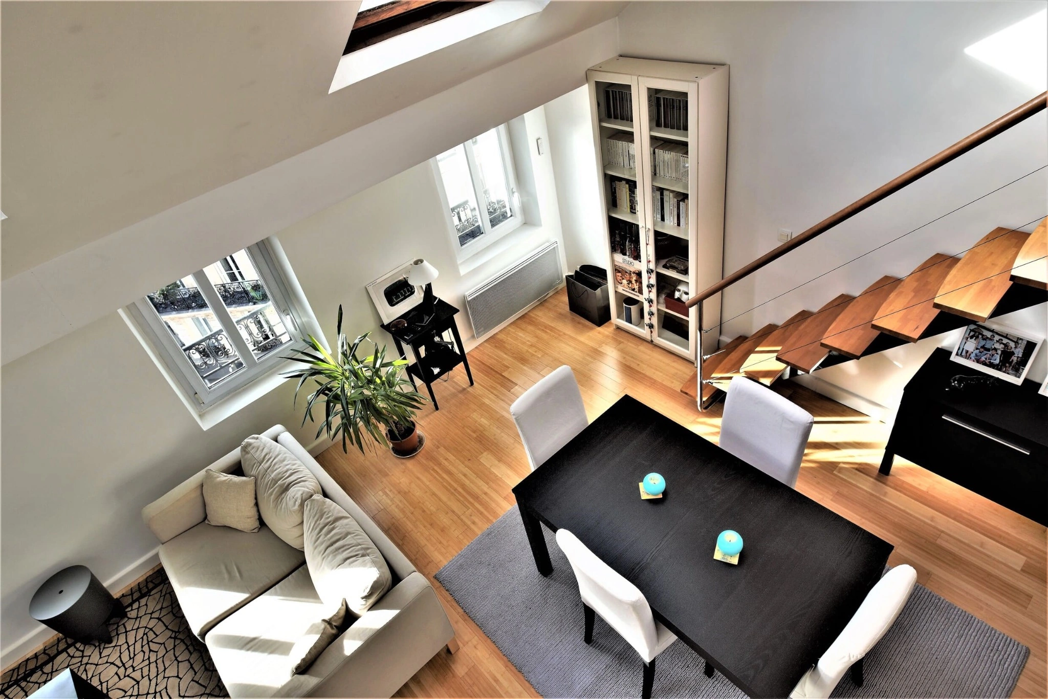 Amateur de vue dégagée et de volumes exceptionnels, découvrez ce superbe loft en duplex à vendre à Paris 9, au cœur du quartier Notre-Dame-de-Lorette – Rue des Martyrs. Situé au sixième et dernier étage d’une belle copropriété ancienne parfaitement entretenue, ce bien rare offre plus de 4,10 m au faîtage et un aménagement pensé pour optimiser chaque mètre carré.