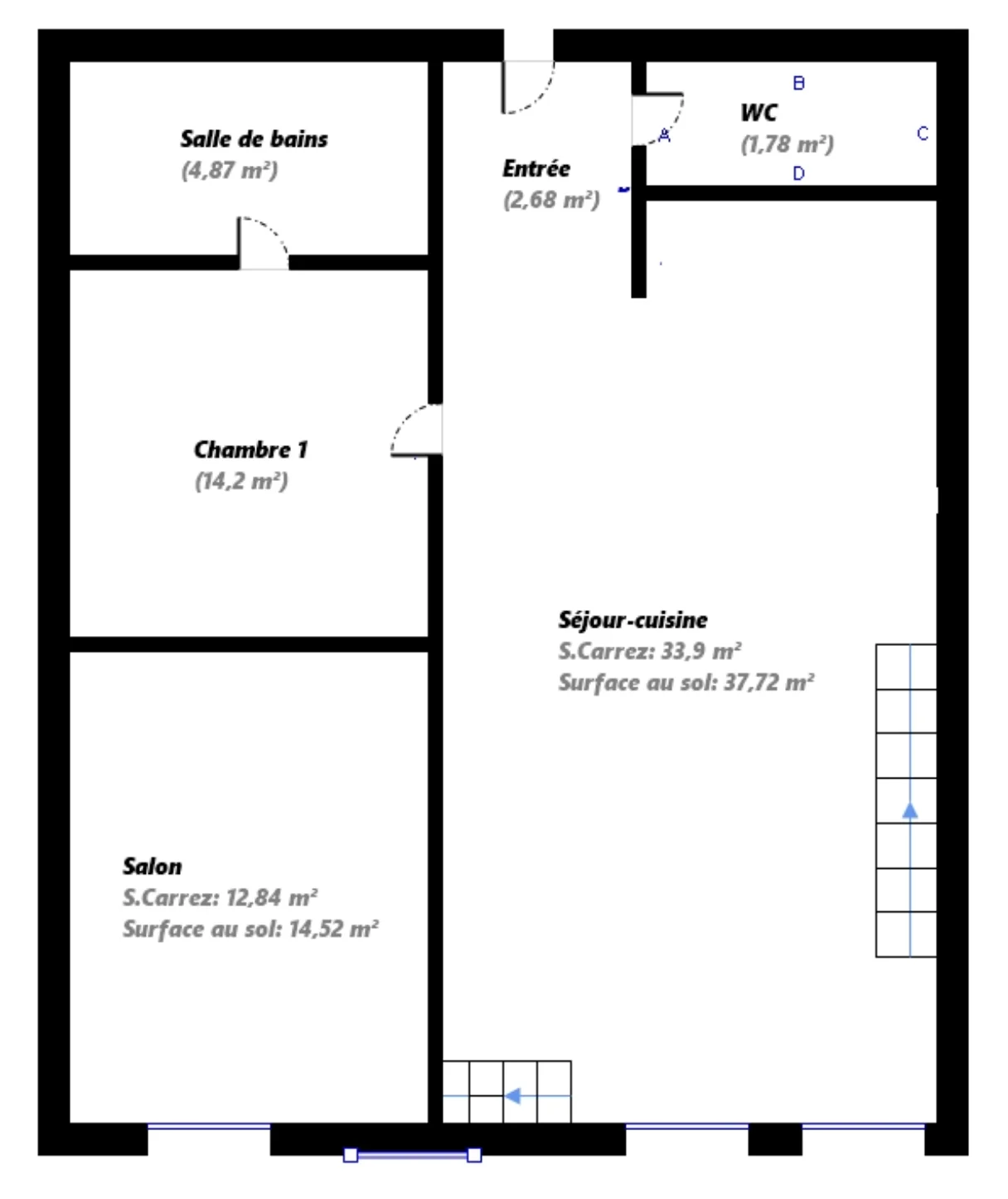 | 1 | Séjour - Cuisine | 37.72 | ||