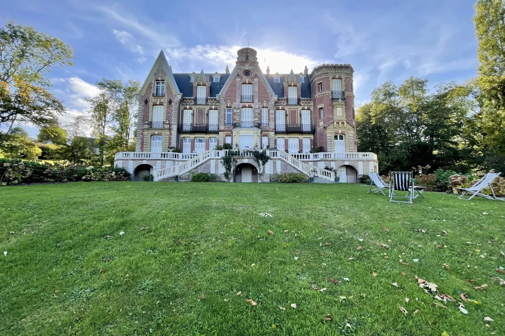Dominant la ville, le château San Carlo s’impose comme l’un des emblèmes de Villers-sur-Mer. Édifié en 1877, ce majestueux édifice en briques et pierre mêle élégance classique et style normand. Entouré d’un vaste parc paysager avec vue sur la mer, il témoigne du raffinement architectural de la Belle Époque et offre à ses résidents un cadre de vie unique, entre histoire et nature.