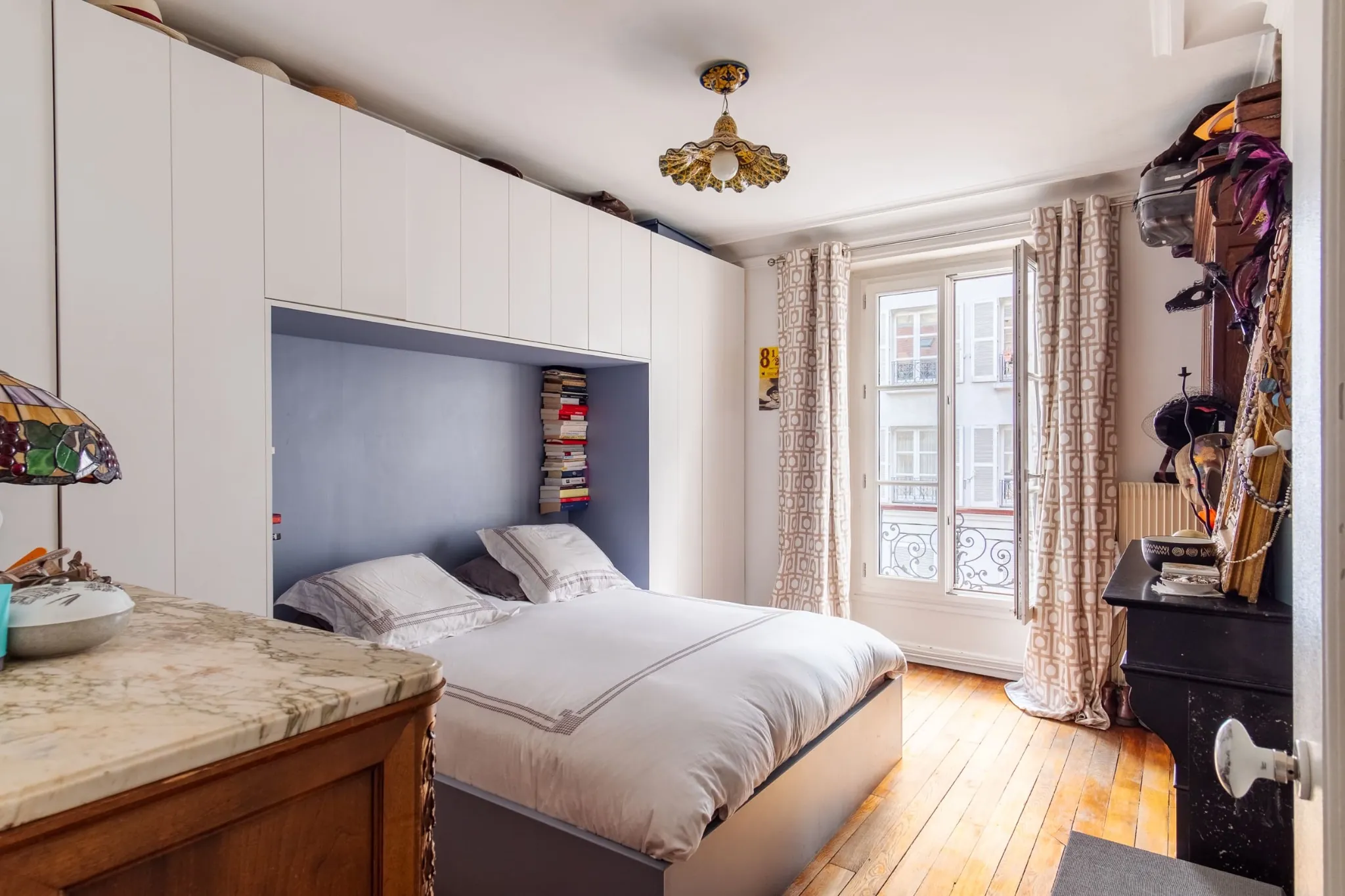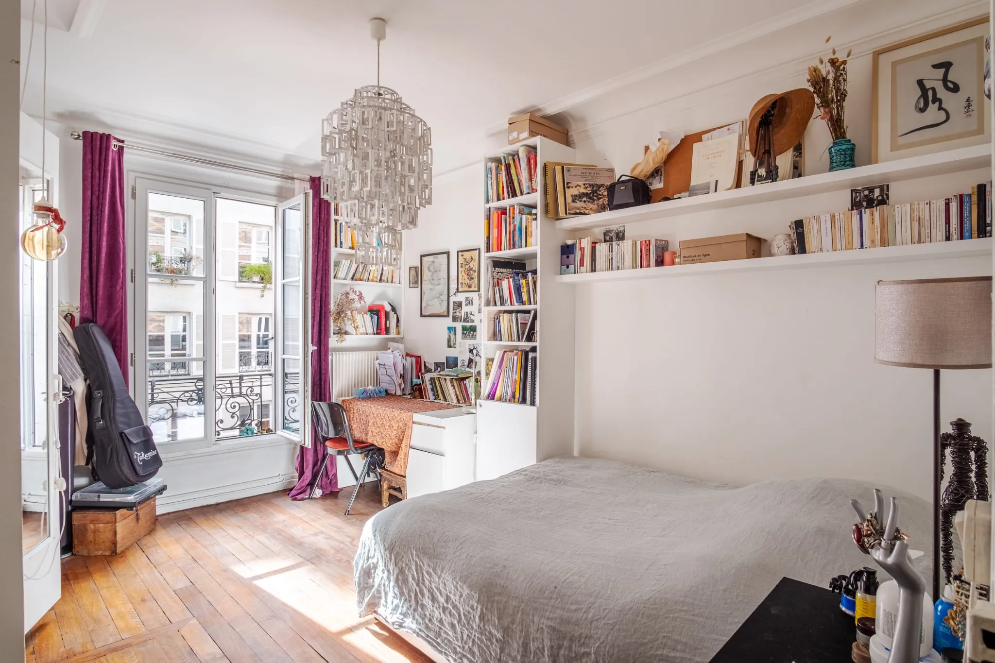 Situé aux deuxième et troisième étages avec ascenseur d’un bel immeuble ancien en pierre et brique, cet appartement en duplex inversé séduit immédiatement par son authenticité typiquement parisienne. Un lieu de vie rare pour les amoureux de Montmartre, alliant caractère et fonctionnalité.