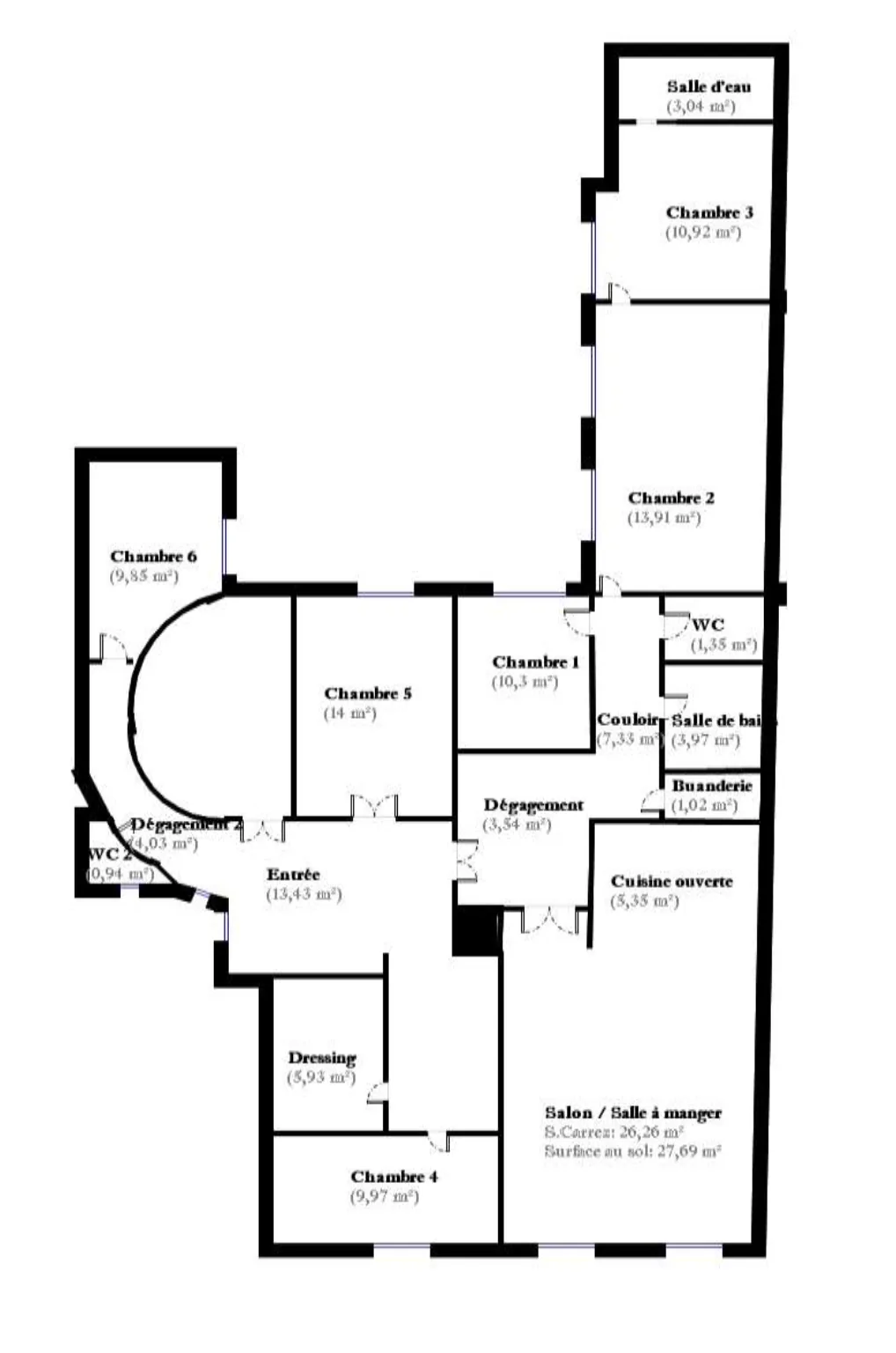 Il bénéficie d’une quadruple exposition et d’une distribution optimisée. Il se compose d’une entrée, de trois dégagements, d’une agréable pièce de vie avec cheminée en état de marche et sa cuisine ouverte équipée et aménagée, de cinq chambres, d’un vaste bureau, d’une salle d’eau, d’une salle de bains, d’une buanderie, d’une pièce de 5 m² pouvant être aménagée en dressing ou salle de bains supplémentaire, ainsi que de deux WC indépendants.
