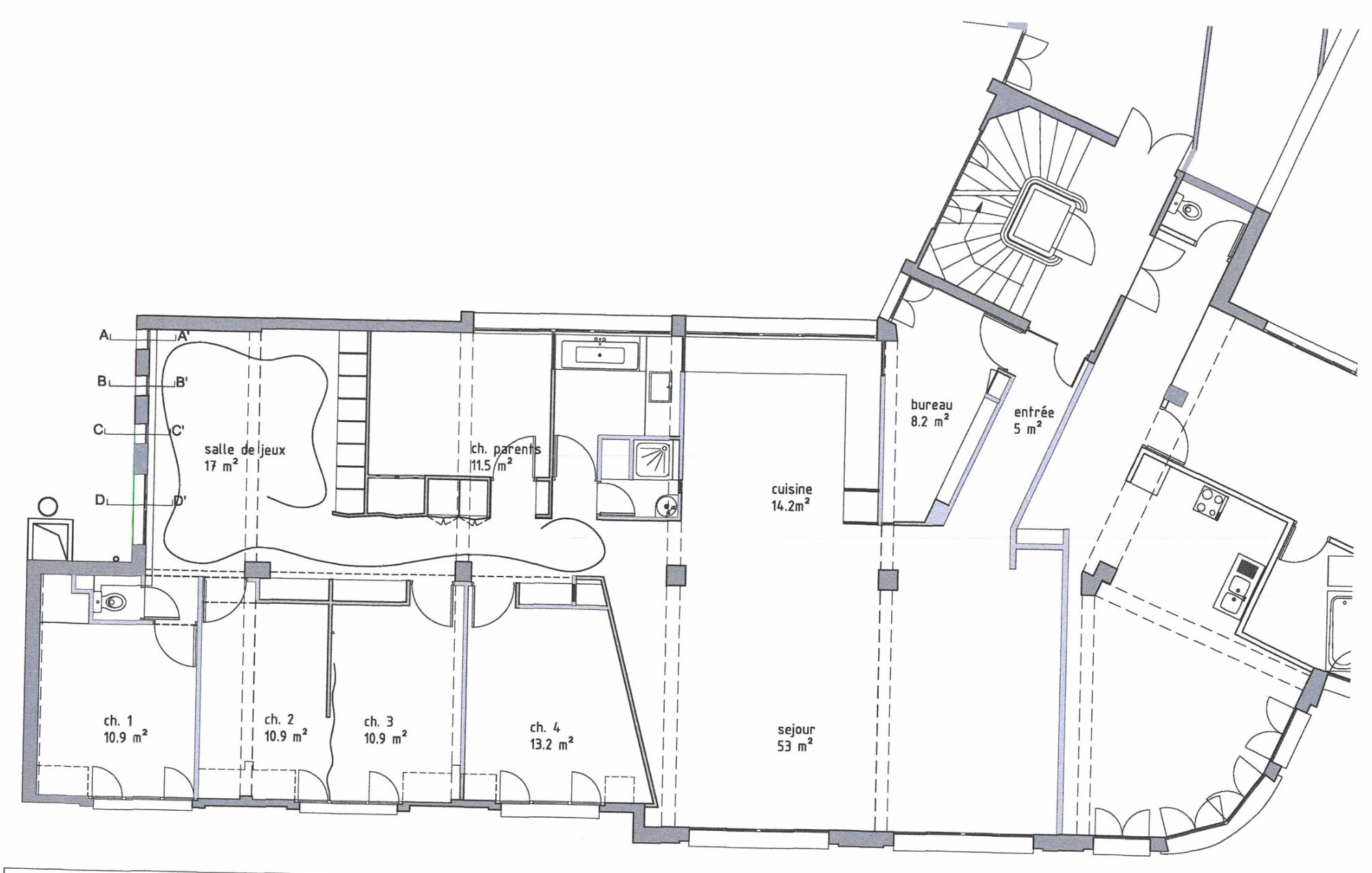 Triple exposition, lumière traversante, structure béton apparente : les volumes s’imposent avec caractère dans un univers à la fois chaleureux et contemporain. L’espace de vie central s’organise autour d’un vaste séjour exposé plein sud, baigné de lumière, avec cuisine ouverte et coin bureau. Côté nuit, quatre chambres, une salle de bains, une salle d’eau, ainsi qu’un espace jeux ou bureau complémentaire permettent une organisation familiale fluide et confortable.